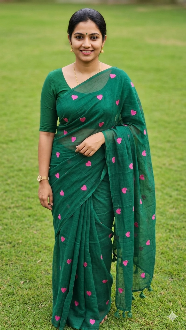 Elegant cotton sarees adorned with delicate heart motifs, perfect for everyday elegance. Crafted from soft, breathable cotton fabric, these sarees offer comfort and style for daily wear. The charming heart patterns add a touch of femininity and grace to your wardrobe. Easy to drape and maintain, they're ideal for casual outings, work, or family gatherings. Available in versatile color options that complement any complexion. Experience timeless beauty with modern comfort in every wear.